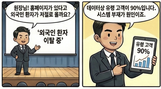 사후 외국인 관리 프로그램을 도입하여 (플렉시즈가 짱 잘함) 구환을 신환으로 또는 신환의 소개로 인한 신환의 재 입장으로 가능할거라 생각합니다.