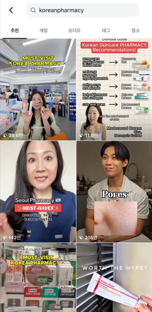한국에서 꼭 사야할 약구템 이라는 제목의 추천 영상이 조회수 3만회이상을 기록하는 경우가 많다.