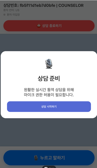 상담사는 한국인이기 때문에 마이크 권을 체크한뒤
