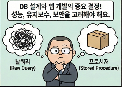 데이터베이스 설계와 애플리케이션 개발 과정에서 **프로시저(Stored Procedure)**와 날쿼리(Raw Query) 중 무엇을 사용할지는 성능, 유지보수, 보안 측면에서 매우 중요한 결정입니다.