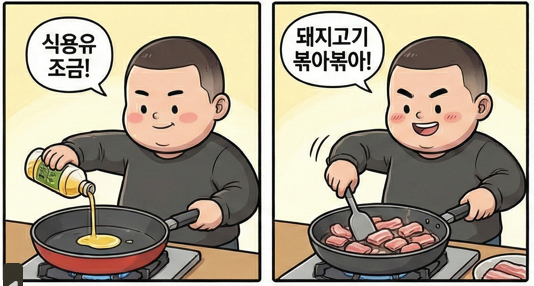 식용유 두스픈 정도 넣고 돼지고기 (삼겹, 앞다리, 찌개용) 넣고 노릇하게 볶습니다.